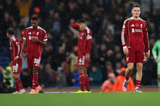 Oförmågan hos både Liverpool och Sloth att bryta ner sitt försvar väcker frågan: vad är det för fel på de regerande mästarna? Deras Champions League-seger mitt i veckan över Real Madrid borde ha varit en vändpunkt i deras oregelbundna säsong. Men Sloths högerback Conor Bradley kunde helt enkelt inte hålla tillbaka den snabbe och dribblande Doucún lika lätt som han tidigare hade hållit tillbaka Vinicius. Liverpools högt hyllade mittfältstråk – Ryan Gravenberch, Alexis McAllister och Dominique Szobosle – var fullständigt överväldigade.