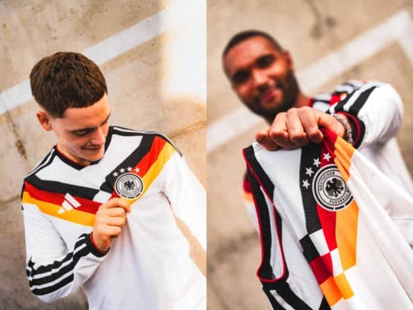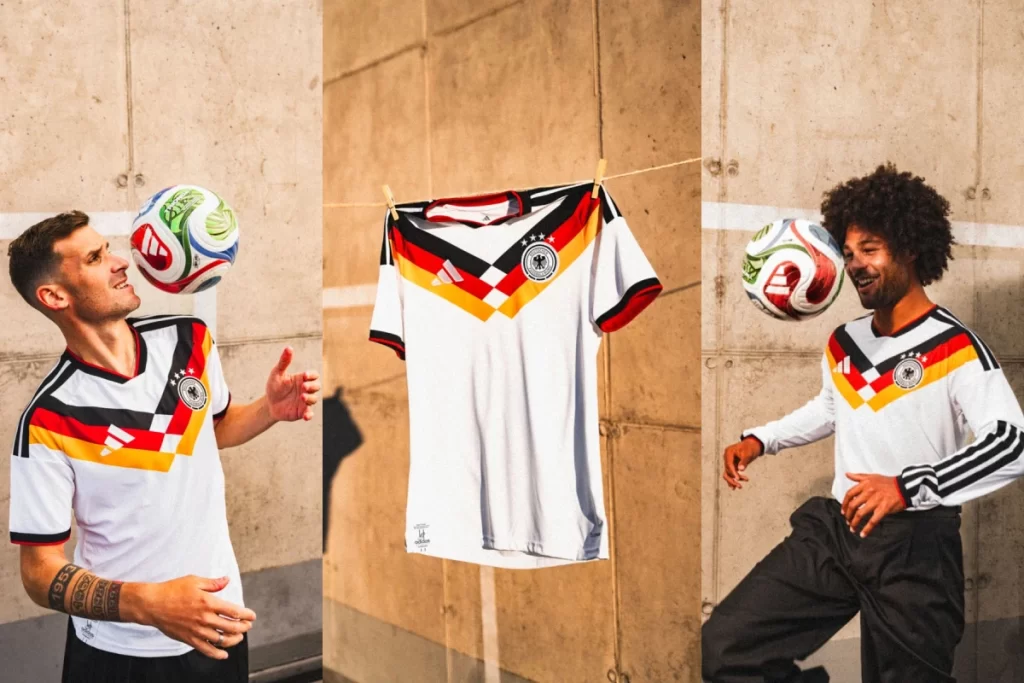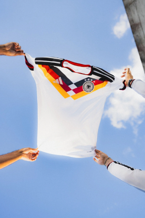 Det nya tyska hemmastället följer sin tradition och använder vitt som huvudfärg. Dess design är direkt inspirerad av de klassiska tröjor som det tyska laget bar när de vann VM 1990 och 2014.