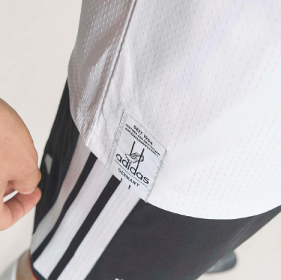 Spelarversionen har ett speciellt autentiskt tyskt fotbollsförbundsvapen i det nedre vänstra hörnet, med retroinskriptionen ”Adolf Dassler 1949-1950”.