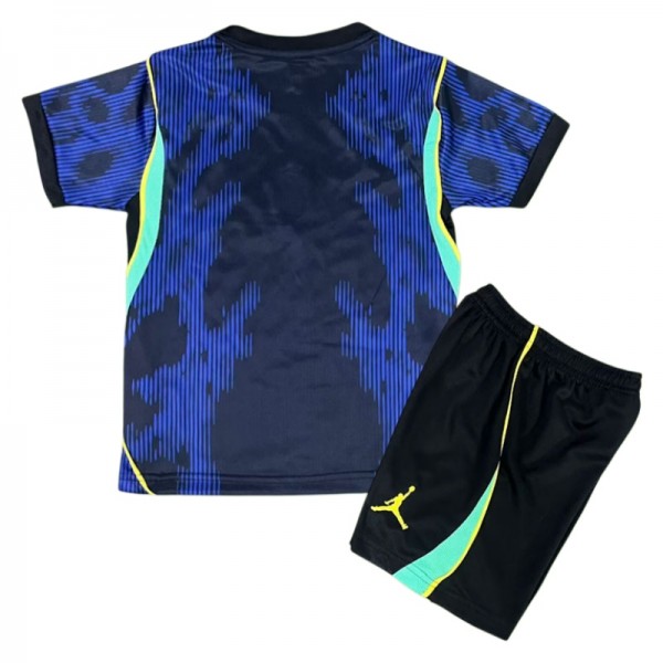 Ge ditt barn chansen att glänsa i Seleçãos eleganta färger även på bortaplan. Detta Fotbollströja Brasilien Borta VM 2026 barnset kombinerar den stolta brasilianska fotbollskulturen med en modern, stilren estetik. Setet består av den karaktäristiska blå bortatröjan och matchande shorts, skapade för att inspirera till kreativitet och rörelseglädje på alla underlag.